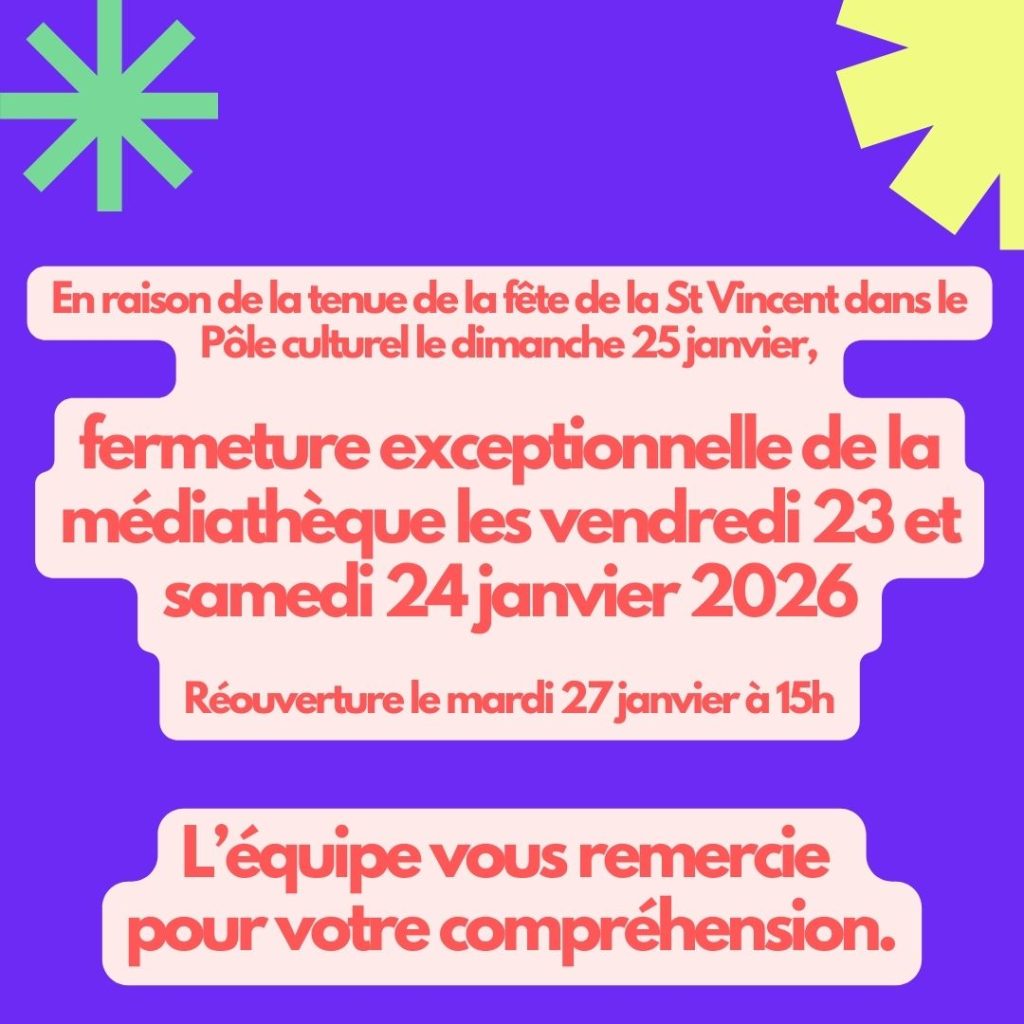 Fermeture exceptionnelle de la médiathèque les 23 et 24 janvier 2026